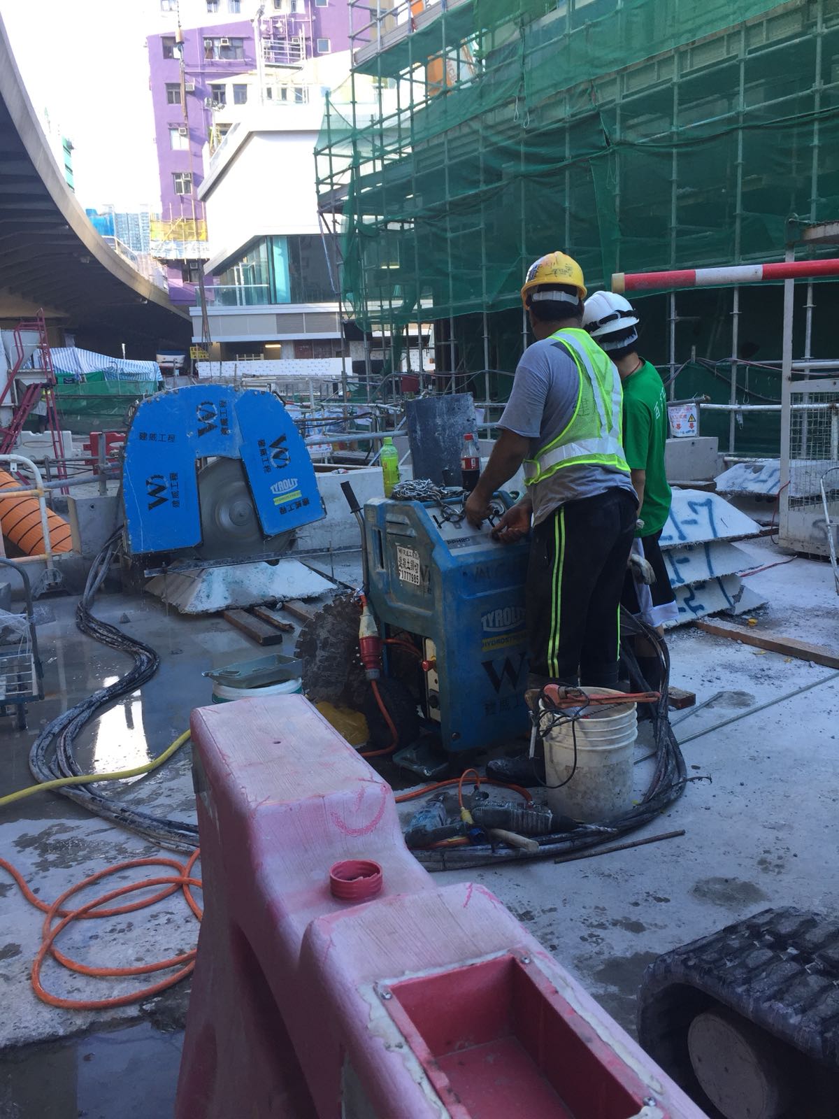 鏈式切割機械具備大功率油壓機及金剛石鑽石鏈,適用於大體積或較厚的鋼筋混凝土結構。污染及噪音較低,而且快速安全,極具靈活性。(鋸切、wire cut、saw cut) -