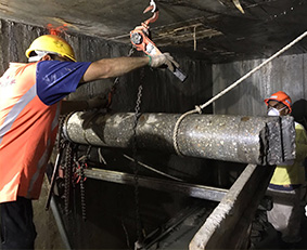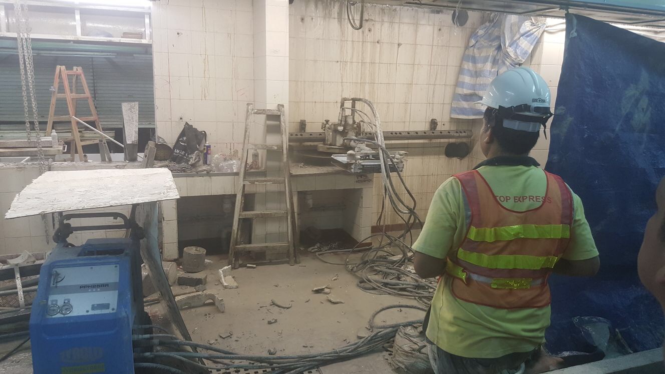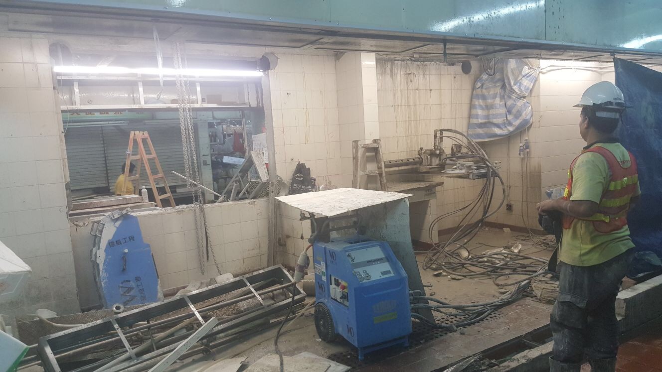 鏈式切割機械具備大功率油壓機及金剛石鑽石鏈,適用於大體積或較厚的鋼筋混凝土結構。污染及噪音較低,而且快速安全,極具靈活性。(鋸切、wire cut、saw cut) -